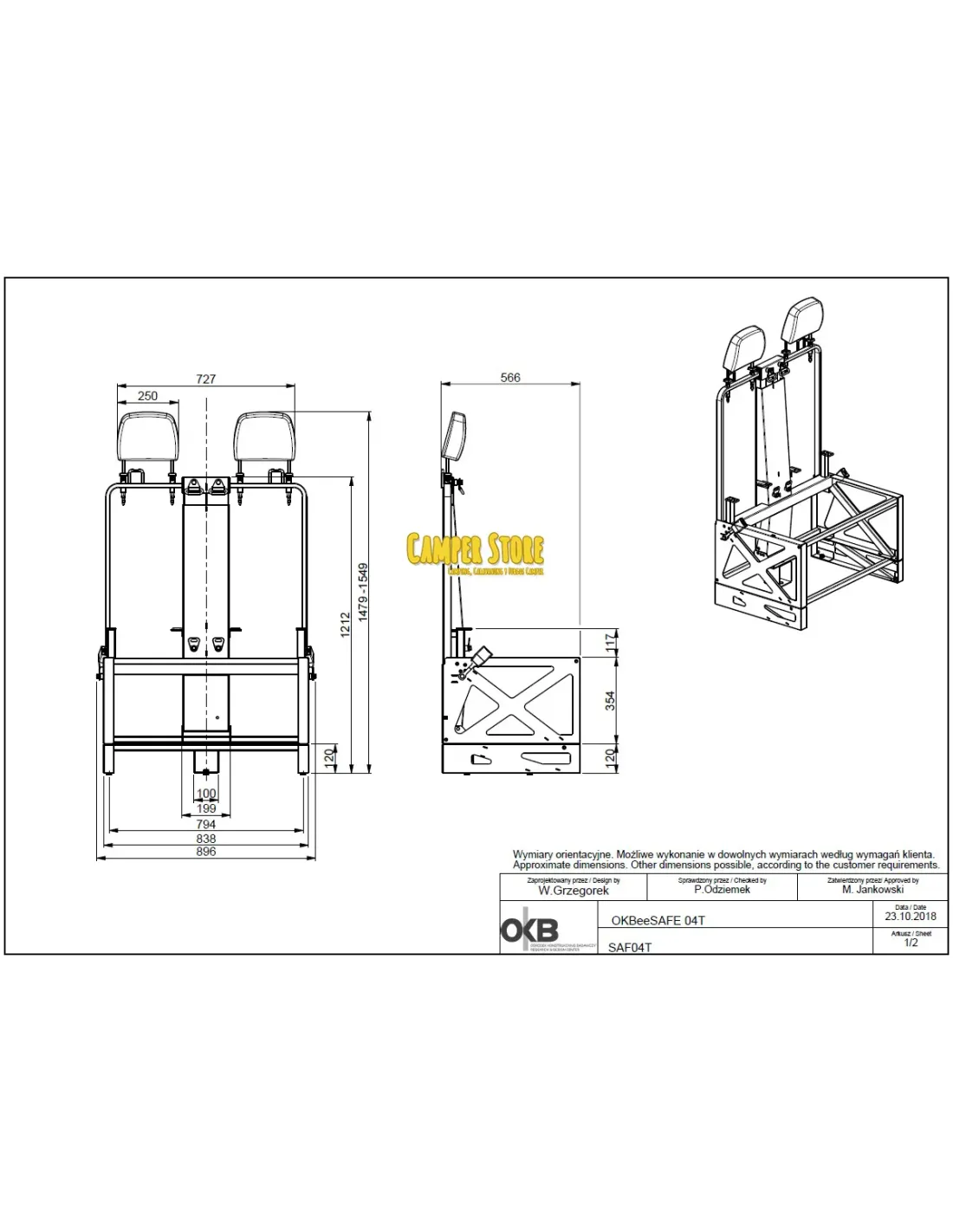Estructura de asiento de dos plazas OKB, con cinturones de seguridad, Isofix y reposacabezas (accesorio necesario para vehículos M1).