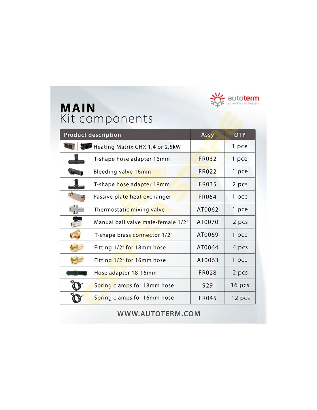 Autoterm Baltica es un kit de accesorios muy versátil para calentamiento de agua y aire.