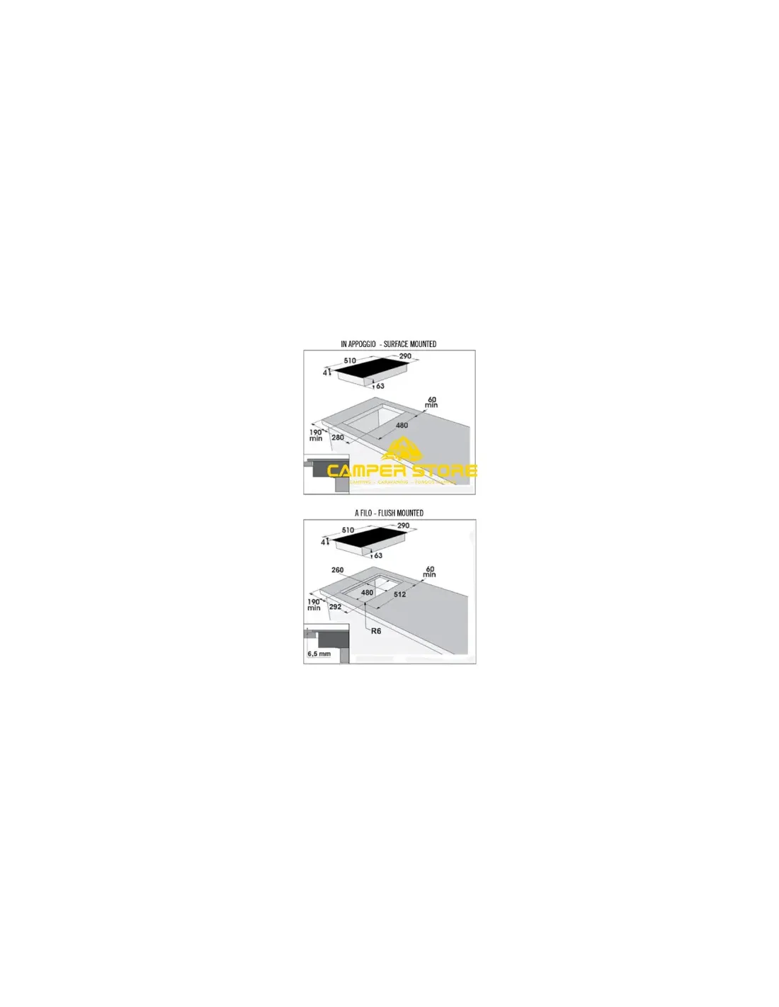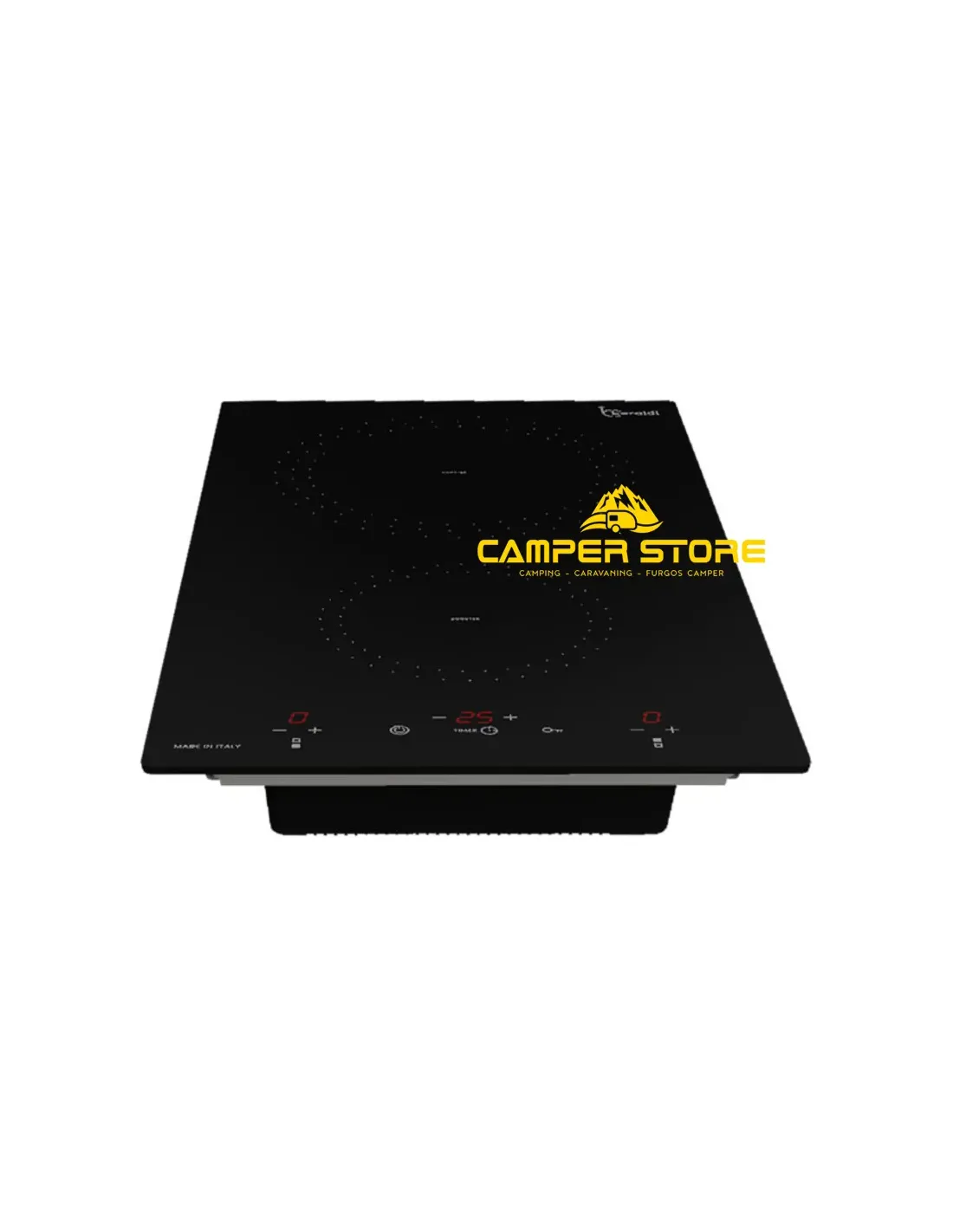 Cocina de Inducción Baraldi Duo 30, con funcionamiento a 230V. Con dos áreas de cocción (160 y 180 mm). Diseño elegante.