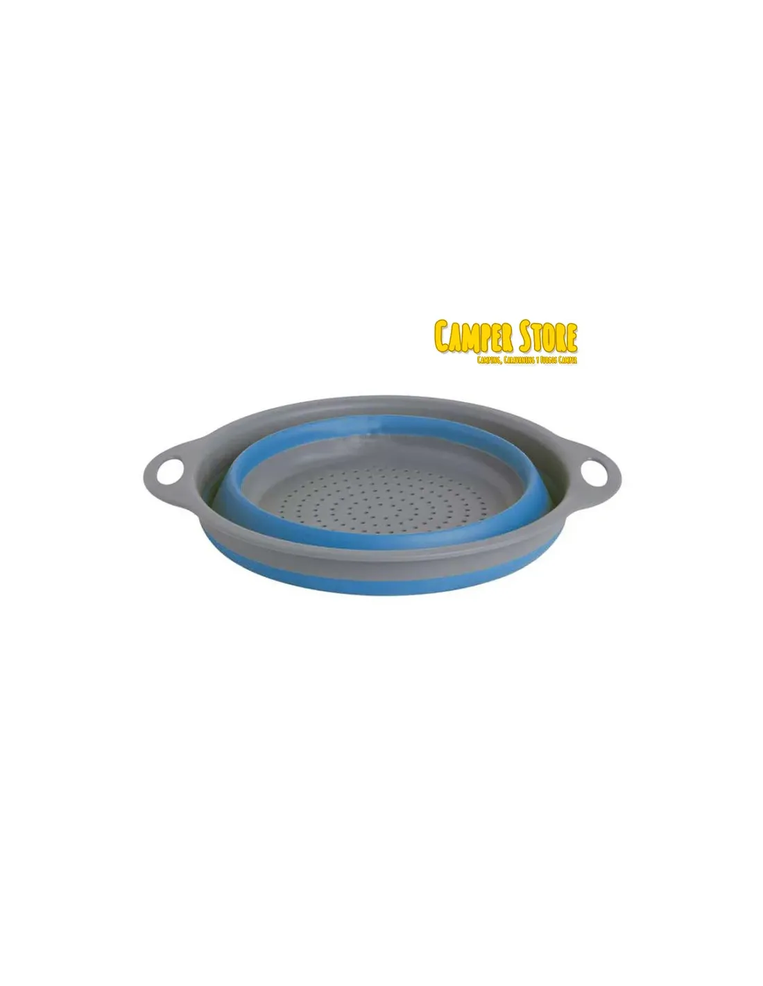 Escurridor plegable de Silicona, color azul y gris.