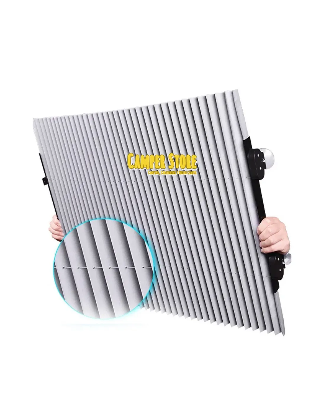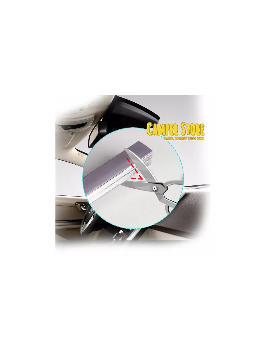 Parasol reflectante replegable Sunfree. Medida: 80 x 150 cm. Recortable. El aluminio exterior refleja el sol y así protege el interior.