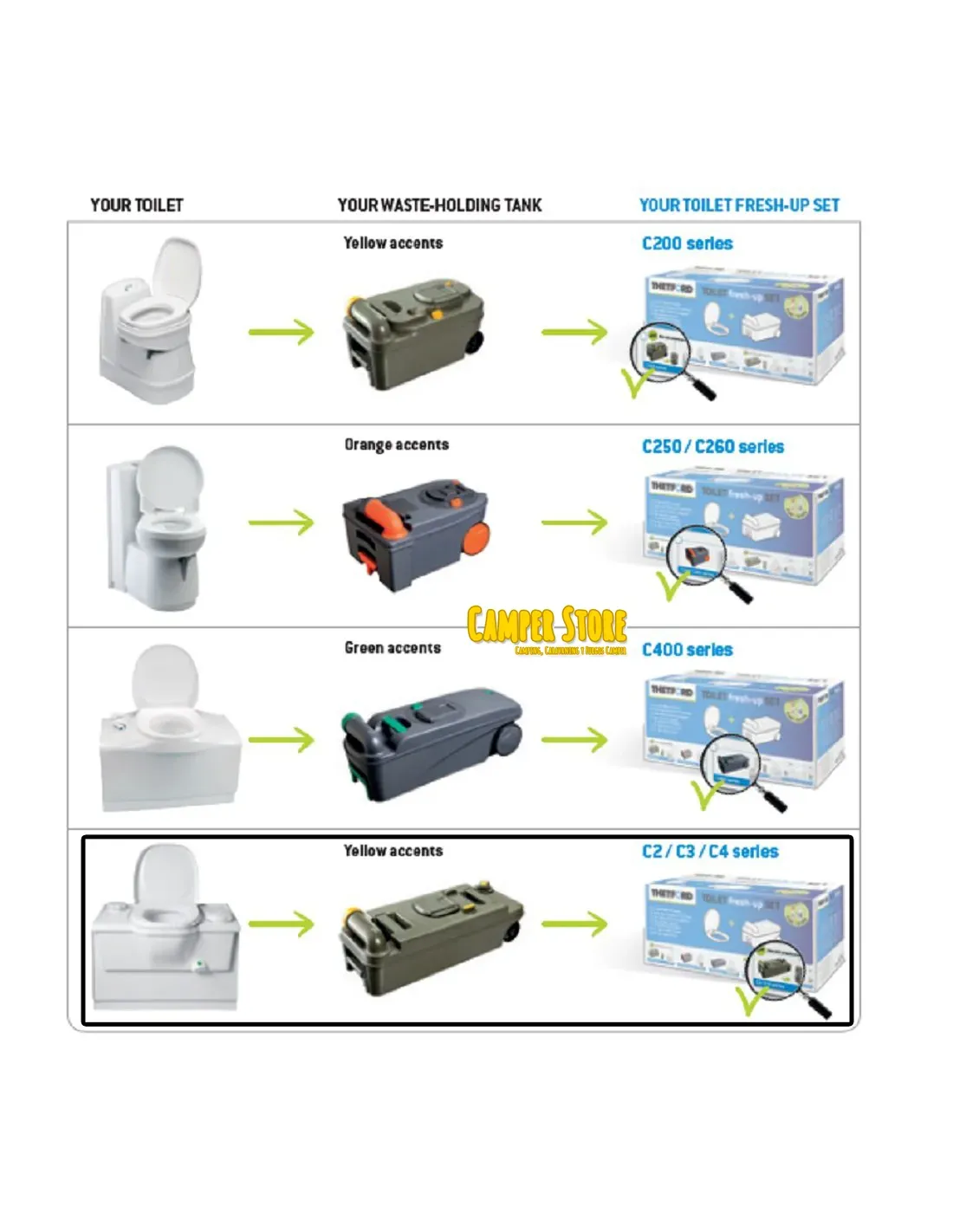 Set Fresh-Up Thetford Cassette C2 C3 C4 derecha