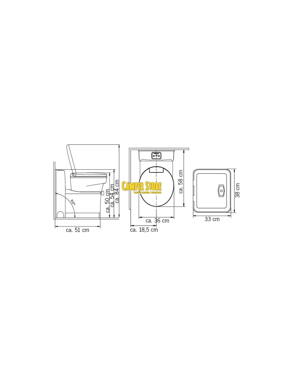 WC Fijo Carbest de 17.2 litros (con consola y portón de servicio). Ideal para autocaravanas y furgonetas camper gran volumen.