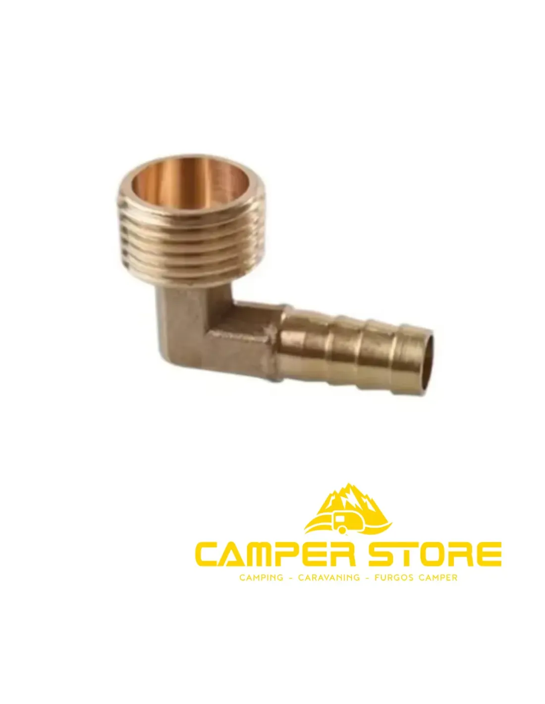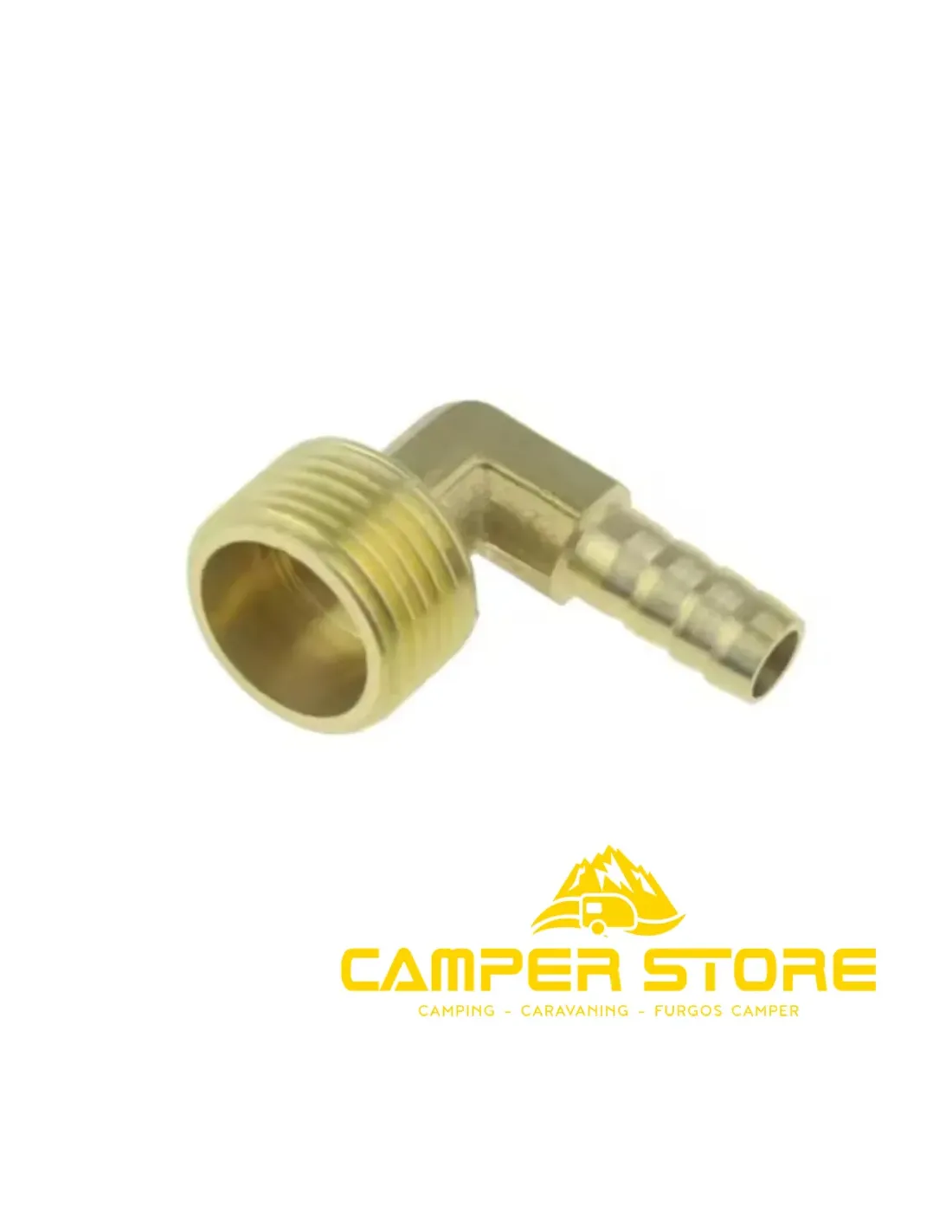 Empalme adaptador de Latón 90 grados, 1/2'' macho a manguera de 10mm. Se vende por unidad. Para instalaciones de agua.