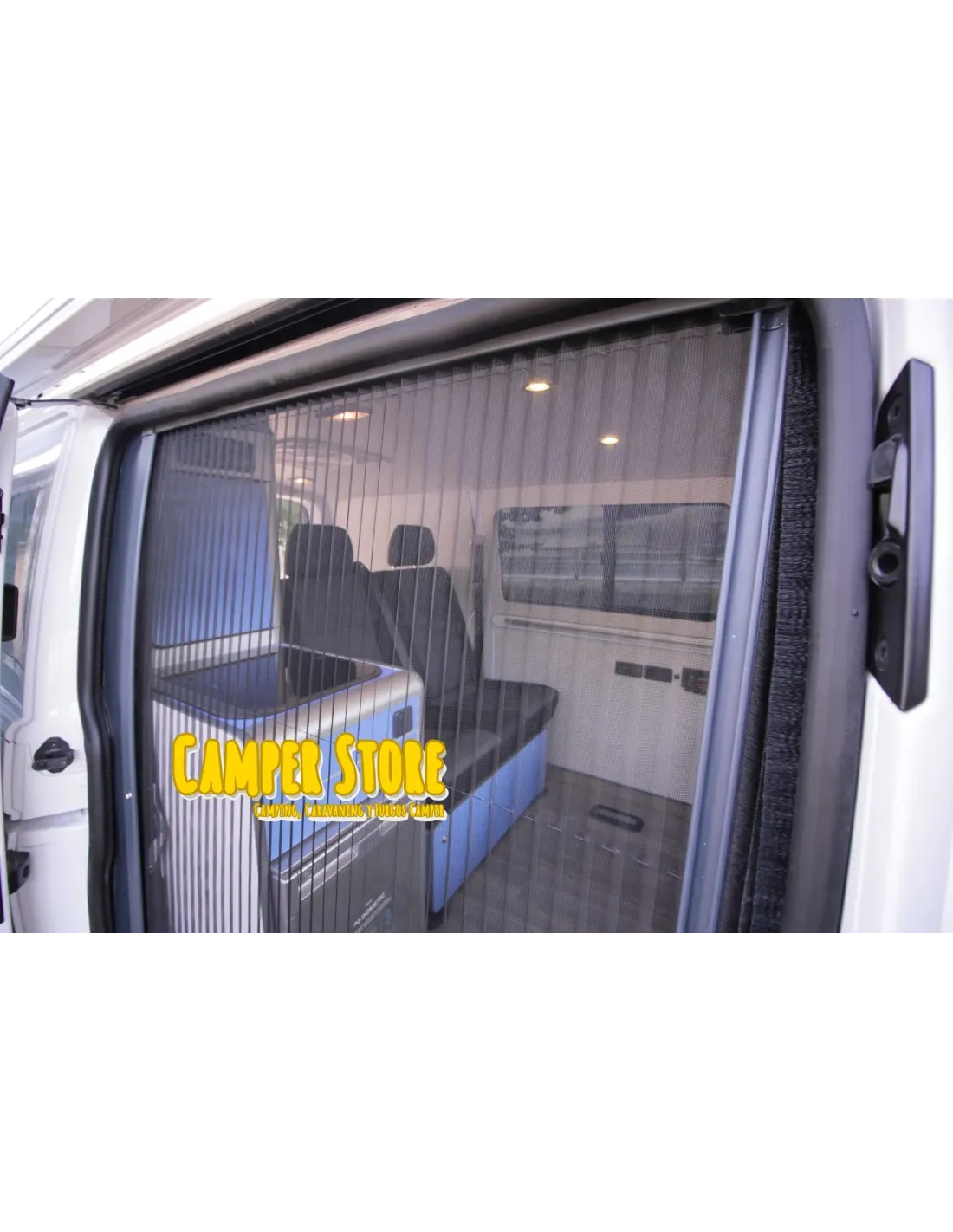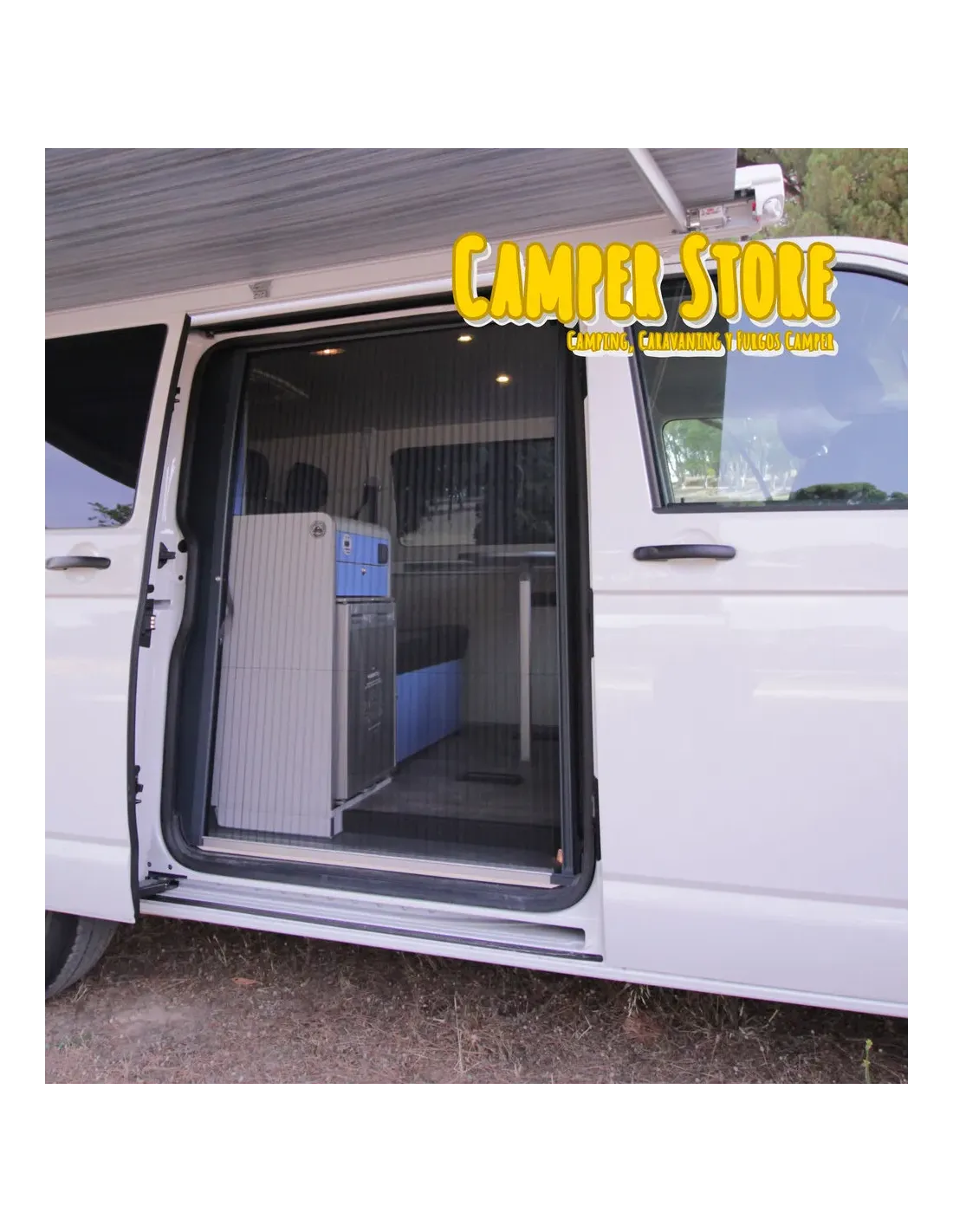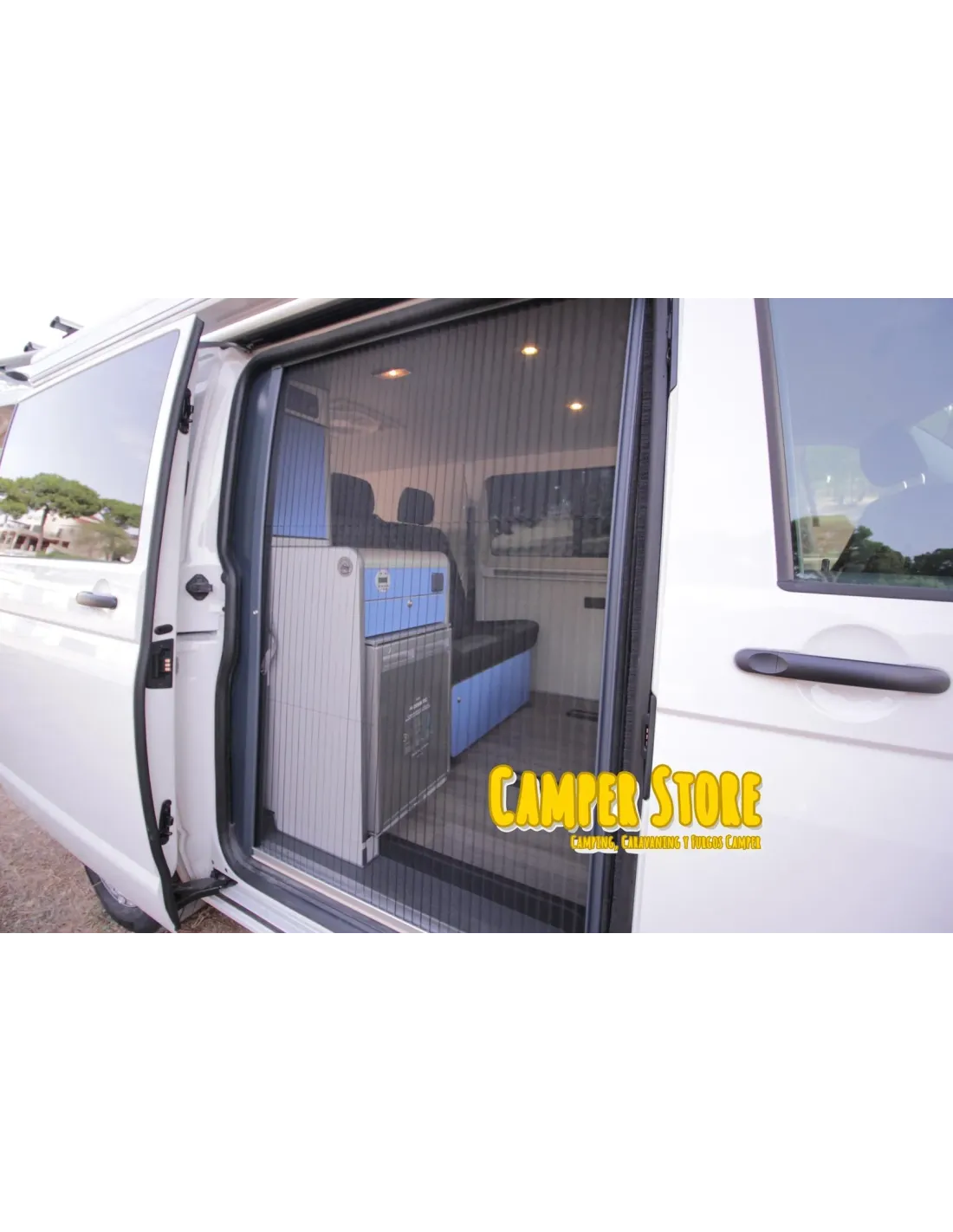 Mosquitera para puerta lateral corredera de VW T5 y T6. Ideal para furgonetas camperizadas. Aporta ventilación con total comodidad.