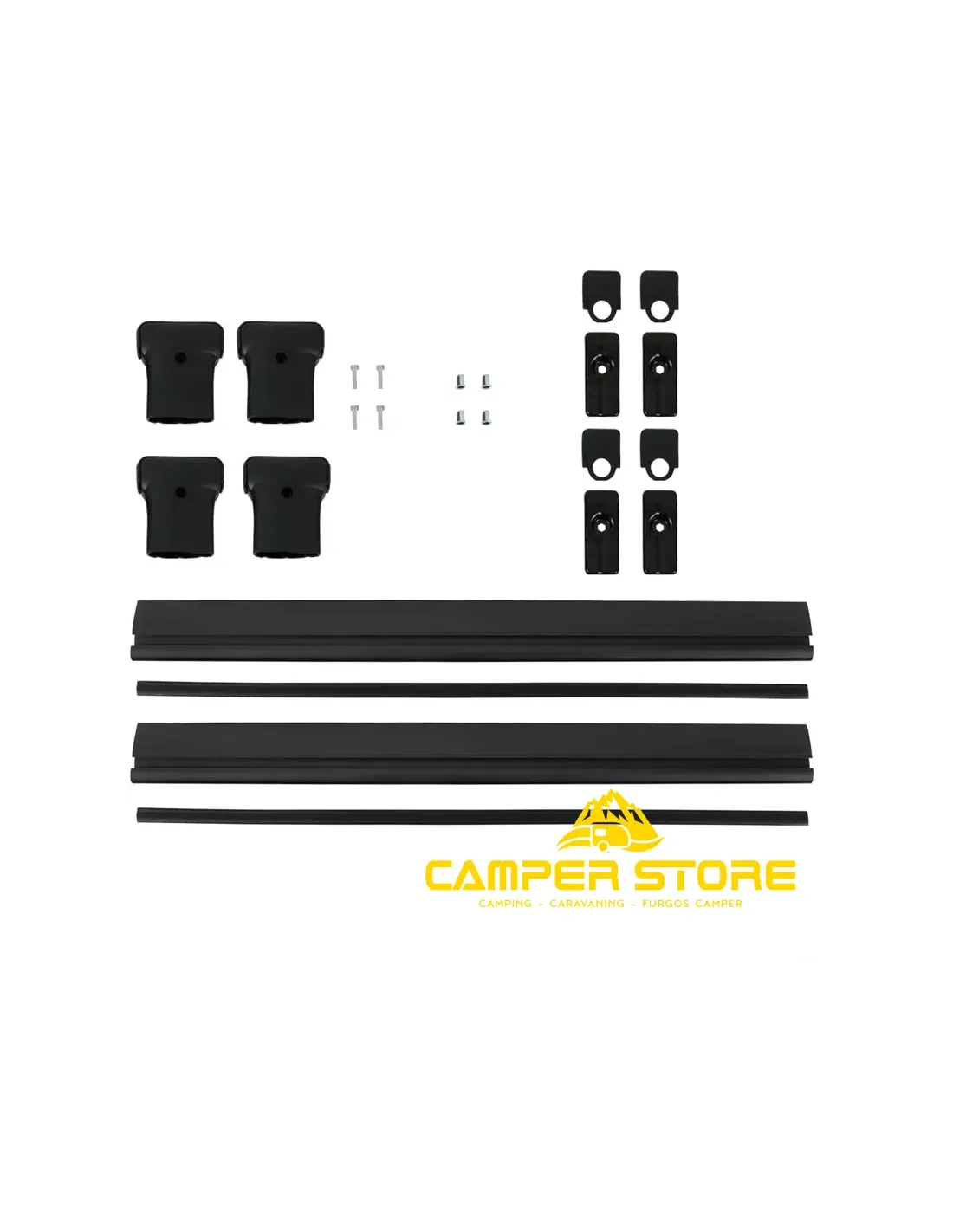 Contenido de la caja: 2 travesaños, abrazaderas y otros componentes de montaje.