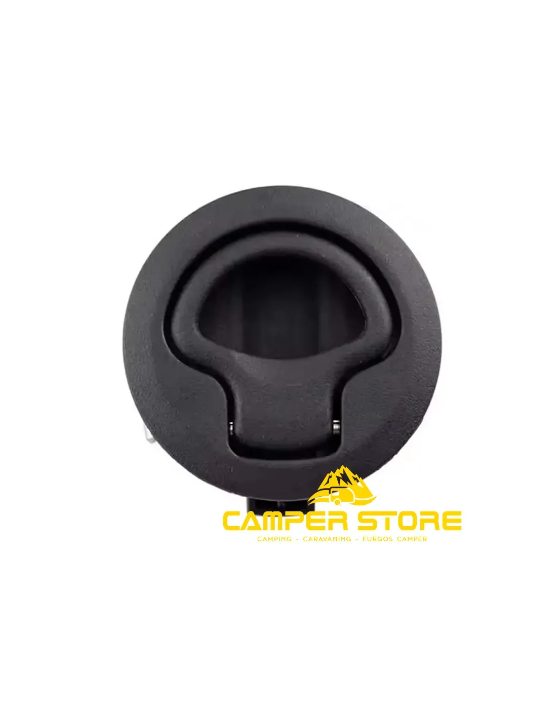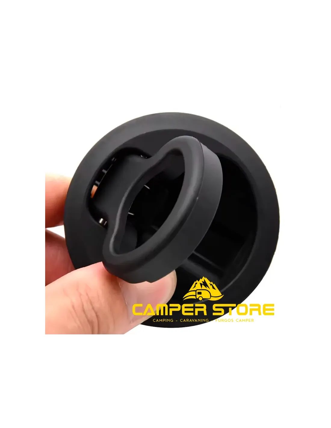 Cierre tirador redondo automático para puertas y cajones, ideal para furgonetas camper y autocaravanas. Color negro.
