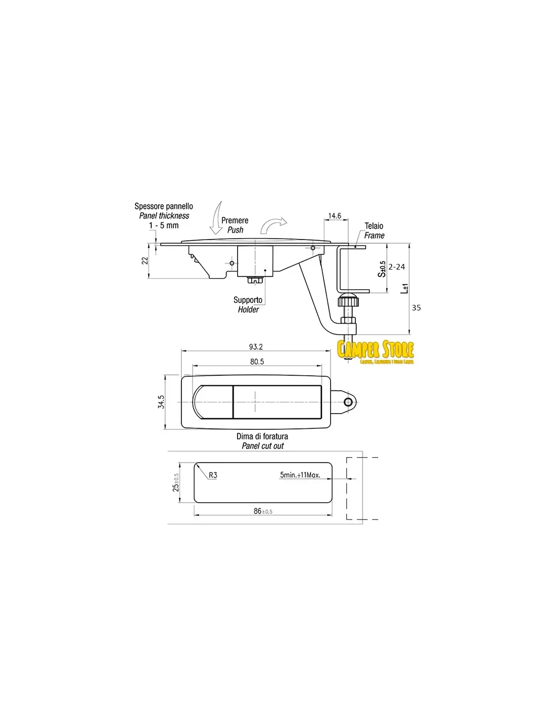 Cierre con pulsador y palanca. Cierre de compresión. Color negro. Ideal para furgonetas camper y autocaravanas.