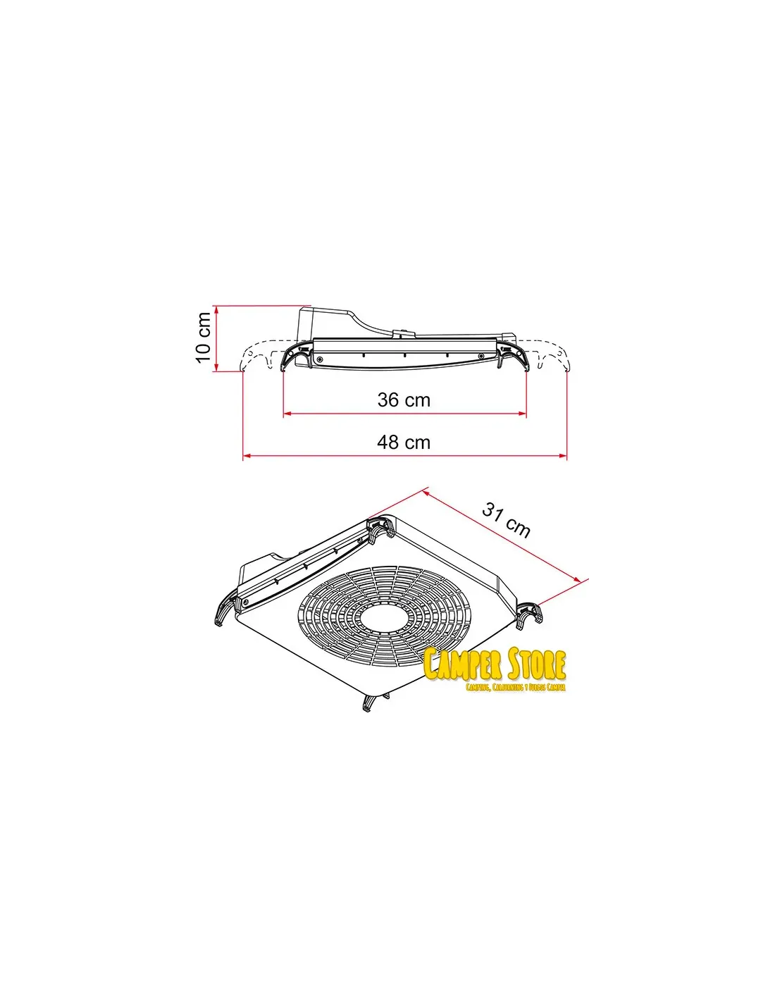 • 1x conectado al alumbrado de 12Vdc de la autocaravana para que funcione como ventilador o extractor de humos