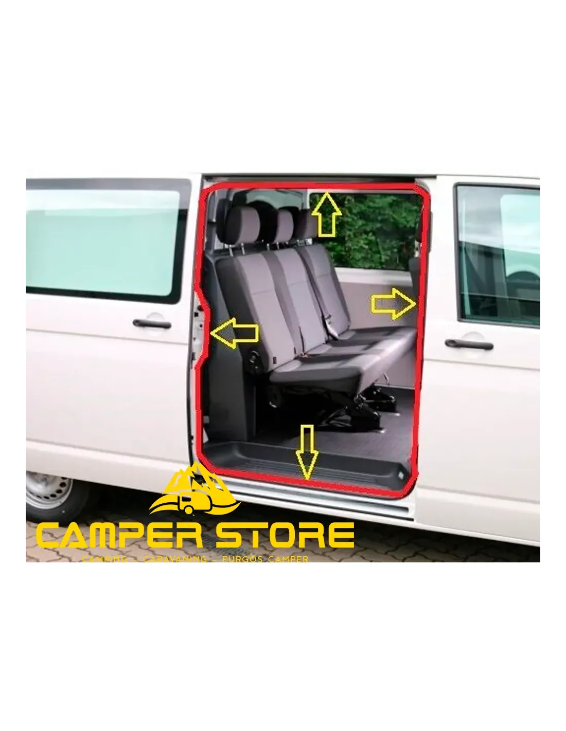 Esta goma de contorno para la puerta corredera lateral es totalmente compatible con furgonetas Volkswagen T5 y T6 (Transporter, Caravelle, Multivan y California). Aunque no es una pieza original, su calidad y ajuste son prácticamente idénticos al OEM, a un precio mucho más competitivo.