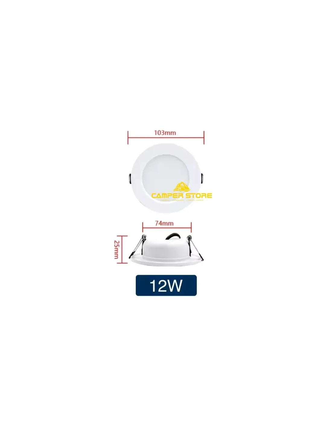 Foco Led 12W. Con Marco Blanco. Luz Blanca fría. Medidas: Ø 103 x 25 mm. Consumo 12W.