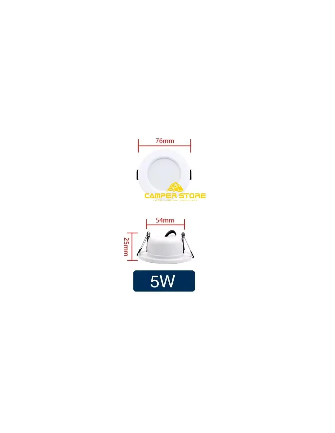 Foco Led 5W. Con Marco Blanco. Luz Blanca fría. Medidas: Ø 76 x 25 mm. Consumo 5W.