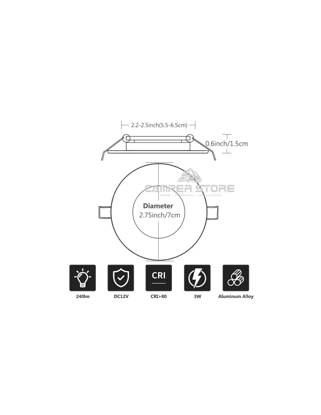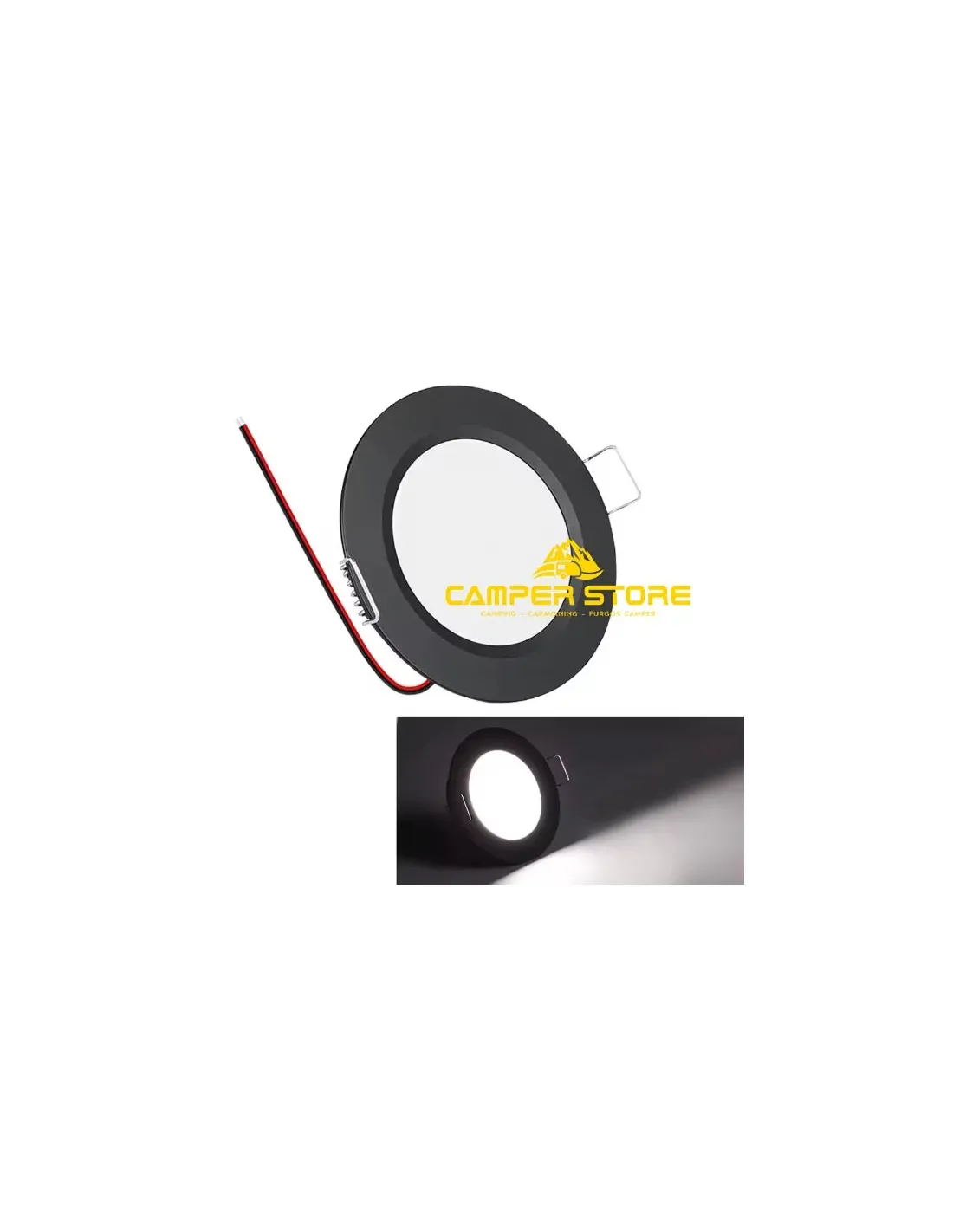 Foco Led 3W. Con Marco Negro. Luz Blanca fría. Medidas: Ø 70 x 15 mm. Consumo 3W.
