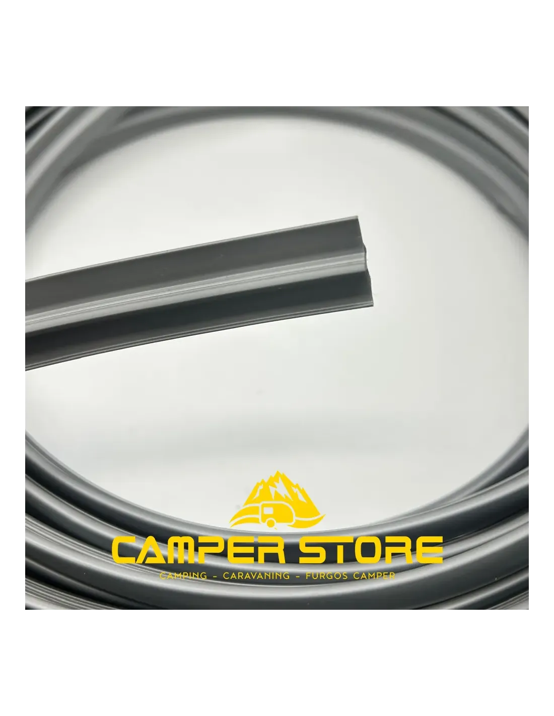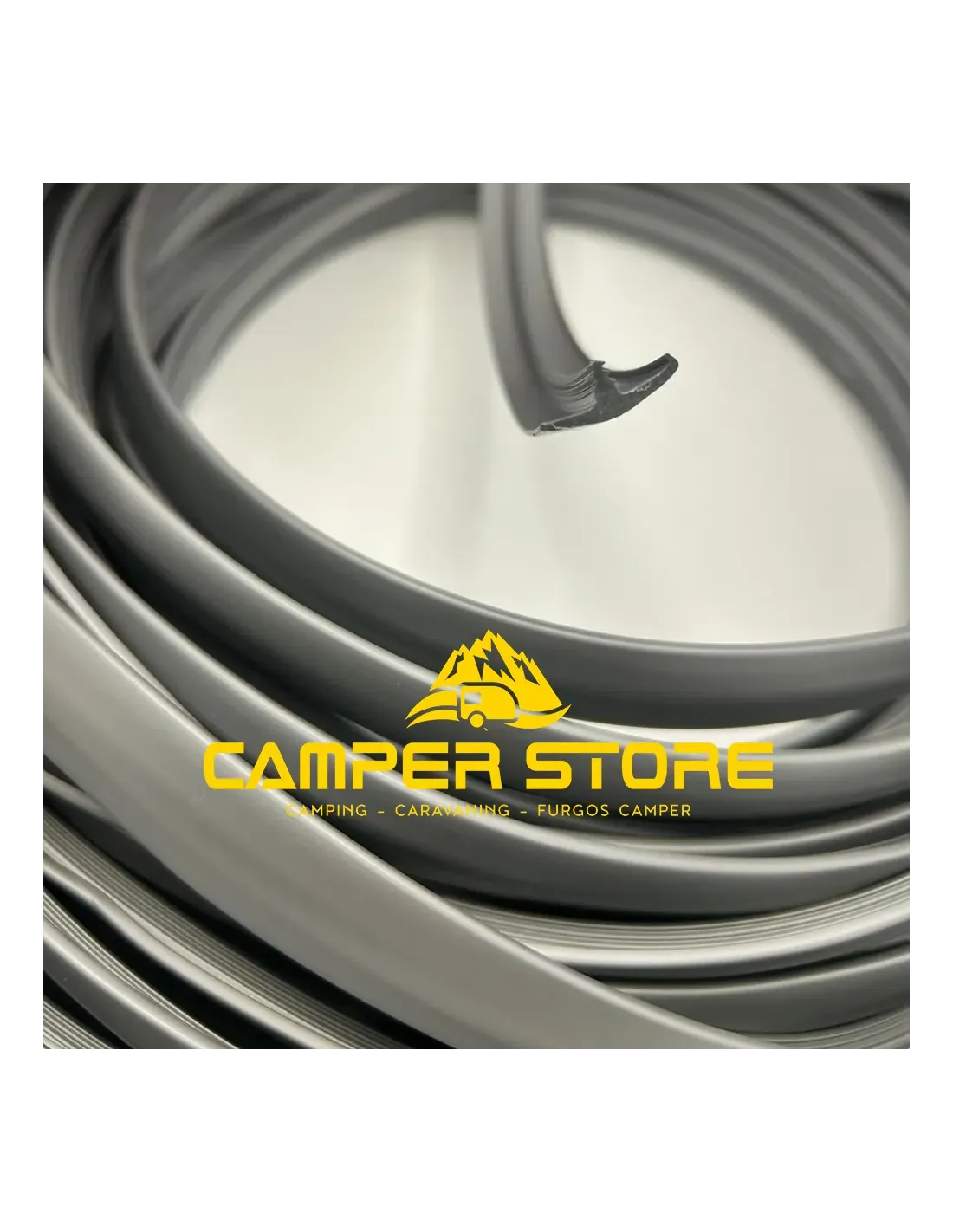 Canto en forma de T para tapar el perfil de la madera. Color gris plata. Ideal para mobiliario camper y de autocaravanas.